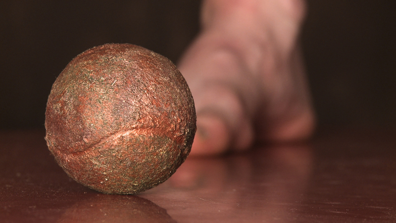 A woman digs up fossilized and dented playing balls. Time is put into motion again.